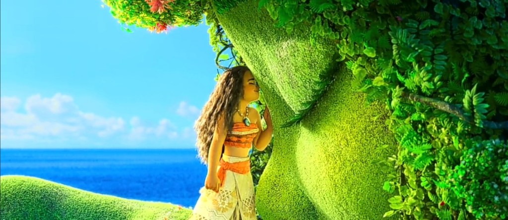 “Te Fiti” is mothernature, the nurthurer and the life bearer. She represents life, senerity and order. After her heart is stolen from her she becomes “Te Kar”, the Goddess of destruction. She represents death and chaos. Maui is a Demi-god, who was abandoned and thrown in the ocean by his mortal parents when he was born. Luckily, he was found by the God’s who made him a Demigod and gave him a fish hook that enabled him to change form. He became a hero for the mortals by stealing fire from the gods and giving it to them, he created coconut trees and pulled Islands from the ocean. He stole the heart of “Te Fiti” in order to give the mortals the power of creation, of life, everything Maui does, he does to please the mortals. Moana is a young girl who will one day be the chief of her people. She is the descendent of voyagers and her father tries to surpress this because of his dealings with the ocean. When he was young, he ventured into the ocean with his friend and catastrophe happened and he wasn’t able to save his friend. The incident changed how he views the world and he is the figure who dissuades Moana from ever leaving the Island. He advices her that the Island is all she will ever need. His father represents the tyrannical father, he represents the predictable, he represents explored territory, he is musculinity, he is order. Moana is the direct opposite from her father. She is a venturer, she explores the unknown, she is bravehearted and spirited, she is open minded, she represents feminity, she represents chaos. As a young child, a toddler, the ocean chooses her as someone who will someday restore the heart of “Te Fiti” and restore the balance in the world. Her father’s teachings prohibit her to be who she truly is and this struggle is one day broken when she learns about her heritage and is forced to choose. She chooses to venture out into the unknown and the movie follows her on her journey of self-realization.