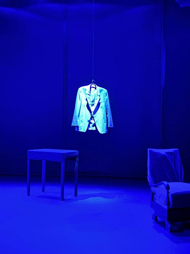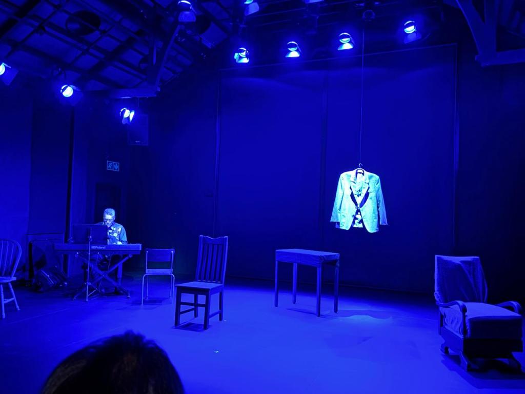 Bo Petersen tells the story from different perspectives, her father’s, aunts and grandmother, breaking the fourth wall at times to talk to the audience to make them feel what she felt. The message is powerful and emotive. The acting unbelievable! She also enacts the roles of her aunt, father and grandmother. She is a great storyteller and inhabits all the stage. She is expressive with her body, language and overall demeanor. The set although minimalistic is effective. The hanging suit serves as a homage to her father, it has a presence, a spirit of its own and Bo interacts with it. The lighting nuanced and intimate. Christopher Petersen plays the keyboard and he sets the tone for the play, working alongside Bo to curate the story throughout.